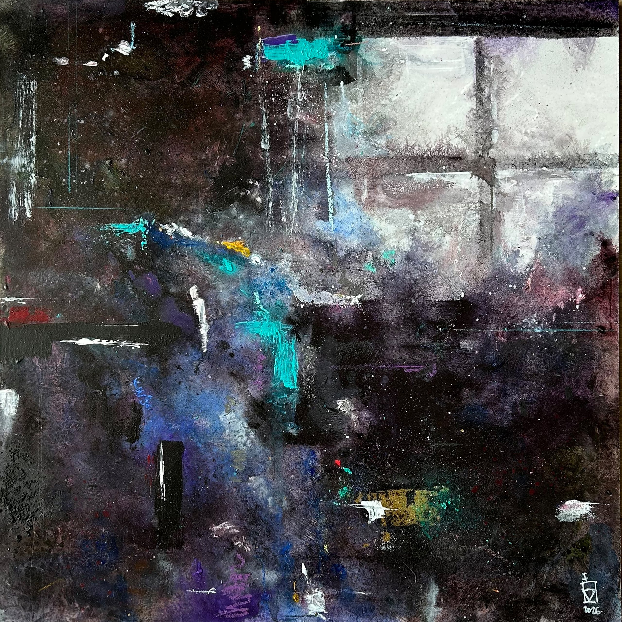 In this project, the rigid wood support becomes a tactile record of fingerprints and silences. Through the use of cold acrylic glazes, scratches and dense pastel agglomerations, the matter acts as a direct vehicle for introspection. The act of painting becomes an exercise of subtraction and accumulation; a voluntary renunciation of the outer coordinates to be able to inhabit the void.